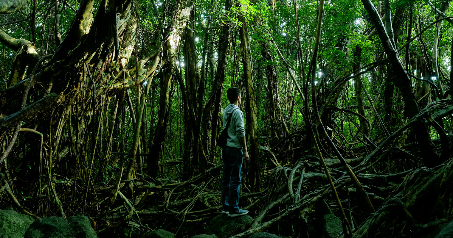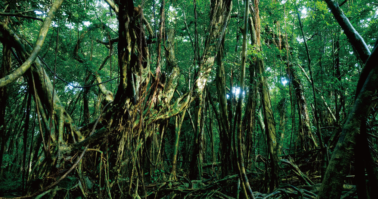鬱蒼とした生命力溢れる森に佇む サル川ガジュマル 屋久島は日本で自生するガジュマルの生育地の北限。ジャングルのような空間や無秩序に広がった根や幹が生命力あふれる空間を作り出している。 Googleで検索